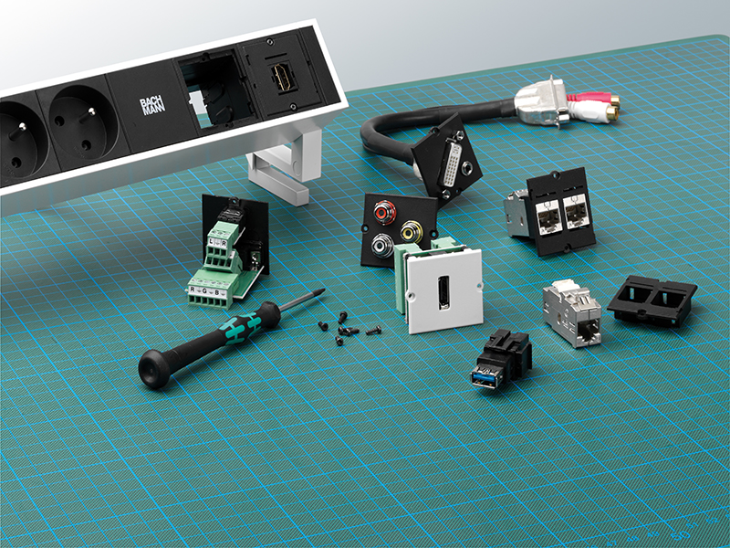 Das Bachmann Custom Modul 1x HDMI Buchse (917.183) ist für die individuelle Bestückung der Tischeinbaufelder Bachmann CONI, Bachmann DESK, Bachmann Rack Installation und Bachmann Elektroinstallationen geeignet.