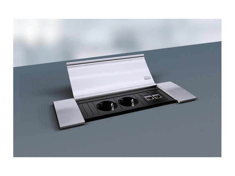 Die Evolution der kompakten POWER FRAME ist die POWER FRAME COVER. Eine elegante und formschöne Aluminium-Abdeckung, die besonders für designorientierte Konferenz- und Büro-Ambiente konzipiert wurde und ganz nebenbei Strom- und Datenanschlüsse vor Staub und Schmutz schützt.