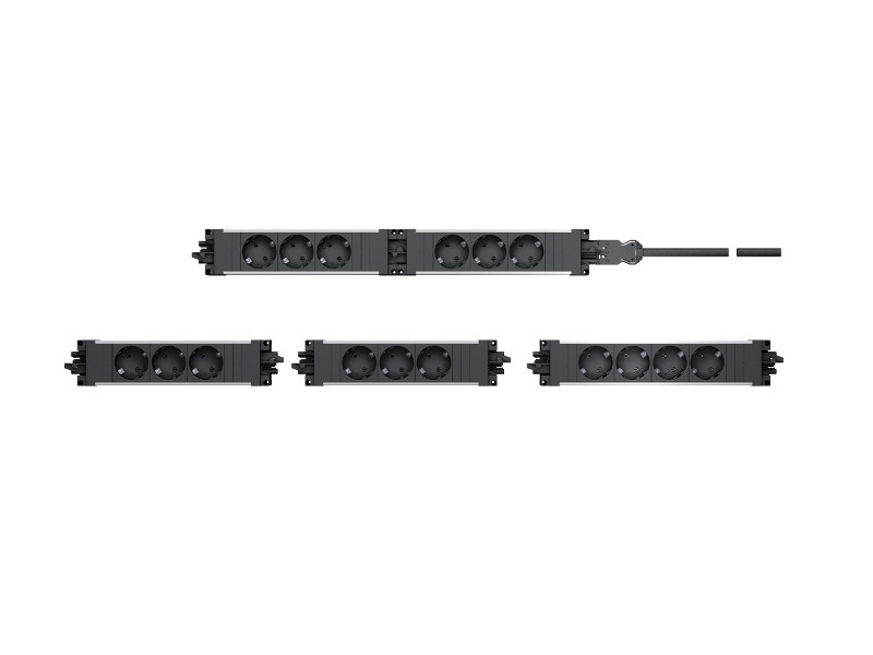 Die Bachmann STEP Steckdoseneinheit ist mit Aluminium- oder Kunststoffprofil verfügbar. Mehrere Steckdoseneinheiten können als Baukastensystem miteinander verbunden werden. In erster Linie ist Bachmann STEP als einfache Elektrifizierungseinheit für den Büroarbeitsplatz ausgelegt. An Bachmann STEP können permanent aufgestellte Geräte wie PC, Monitor, Drucker usw. angeschlossen werden. Bachmann STEP Steckdoseneinheiten verfügen über einen Stromeingang und einen Stromausgang, jeweils stirnseitig in den Endkappen integriert. Die eingebauten Steckverbinder GST18 von Wieland sind besonders bewährte Verbinder für den Büroeinsatz und verfügen über die entsprechende Kodierung und Steckerverrastung nach gültiger Norm. Bachmann STEP Kombinationsmöglichkeiten Einzelne Module können zusammengesteckt oder mit einer Verbindungsleitung beliebig kombiniert werden.