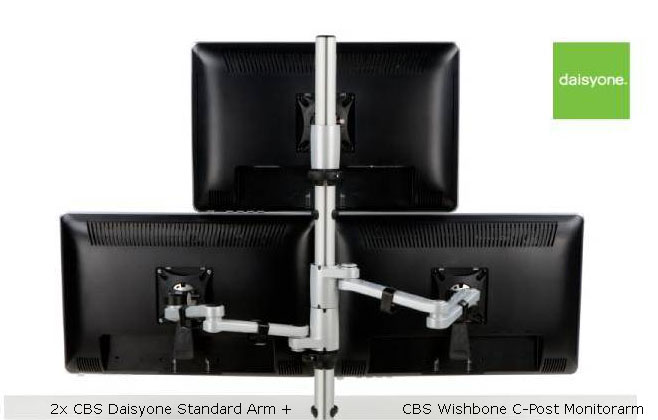 Der CBS Daisyone Standard Arm, silber ist mit dem traditionellen Adaptersystem von CBS vielfältig kompatibel und erlaubt universelle Single- sowie Mehrfachanordnungen von Flachbild-Fernsehern. Die einmalige Konstruktion sieht zwei Ausbaustufen vor: Das Standardgelenk und der verkürzte Arm.