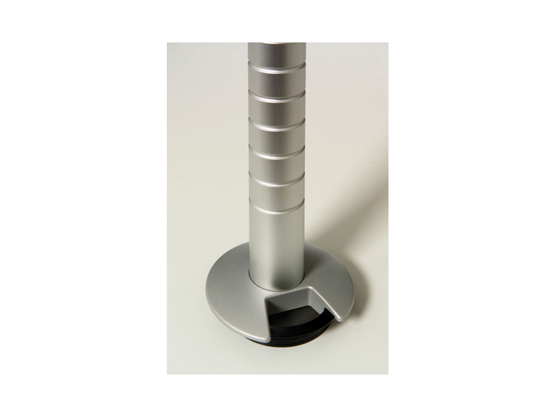 Die CBS Schutzmanschette Tischbefestigung 75 mm (silber) verfügt über eine größere, vorgebohrte Öffnung als die CBS Wishbone durchgehende Tischbestigung. Diese wird von einer dekorativen Schutzmanschette aus Gusseisen verdeckt und hat eine kleine Einbuchtung, durch die alle Kabel bequem verlegt werden können.