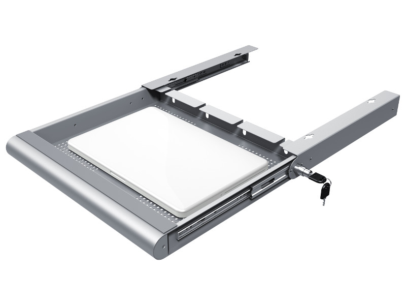 Die Dataflex Notebook Schublade abschließbar für Notebook, Tablet oder Laptop (20.622) wurde entwickelt, um Notebooks sicher unter dem Schreibtisch zu befestigen. Strom- und Datenkabel werden durch die Rückwand ins Notebook geführt und Lüftungsöffnungen sorgen für ausreichende Luftzufuhr.