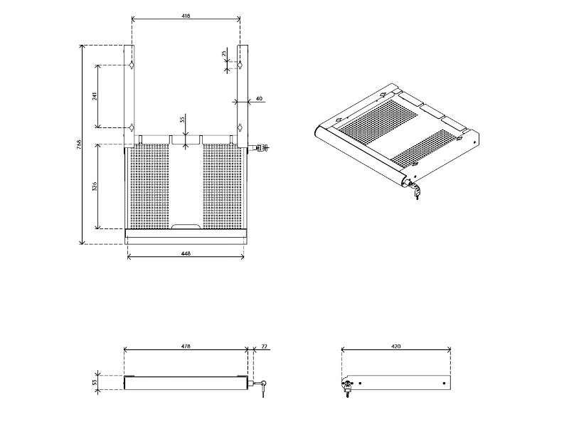 - Abmessungen (B x T x H): 478 x 420 x 53 mm