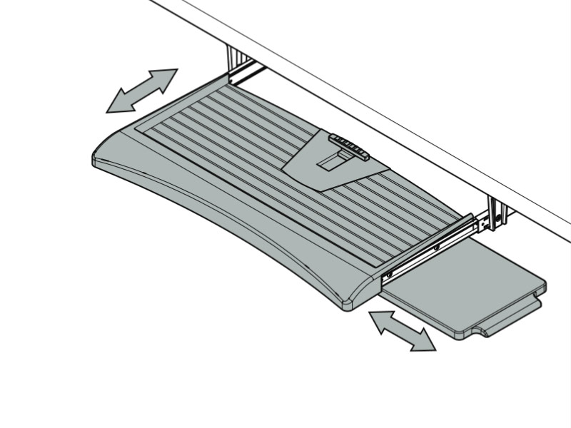Der Dataflex 97.223 Tastaturauszug kann 250 mm unter den Schreibtisch geschoben werden. Geeignet für alle Tastaturen bis 520 mm Breite. Inklusive Mausablage für maximalen Komfort. Montiert auf Gleitschienen für leichte Handhabung.