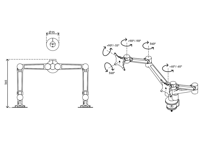 Technische Details Dataflex ViewLite Plus Dual-Monitorarm - Schreibtisch (58653)