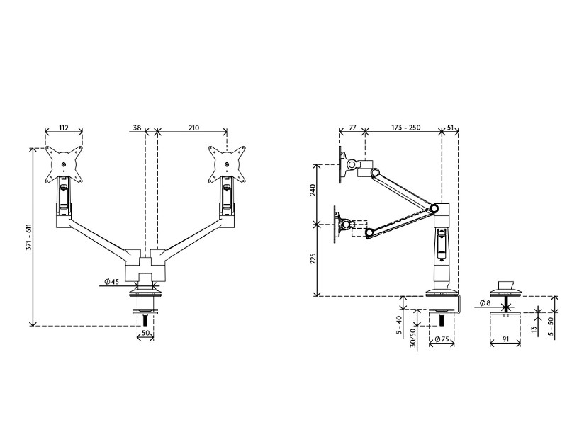 - Geeignet für eine Schreibtischdicke von 5 bis 40 (Klemme) oder 50 mm (Durchtisch)