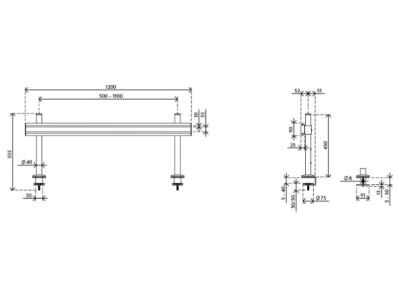 - Geeignet für eine Schreibtischdicke von 5 bis 40 (Klemme) oder 50 mm (Durchtisch)