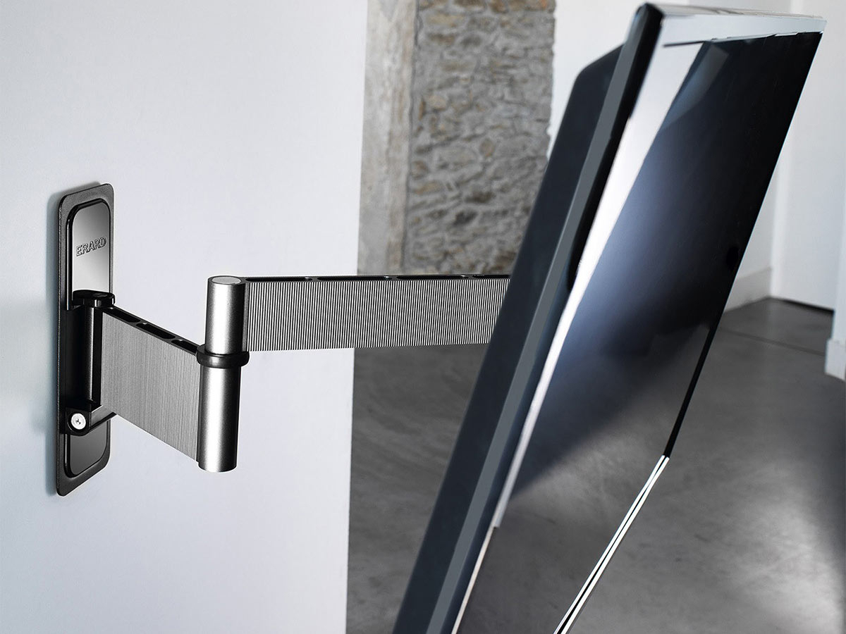Der TV Wandhalter hat einen Aluminium Ausleger mit titanfarbener, eloxierter Strukturoberfläche. Die Bildschirm Wandplatte ist aus Stahl gefertigt und trägt eine Epoxidbeschichtung. Die Erard EXO 400TW3 ist geeignet für Flachbildschirme UND Curved-Screens. DieSchrauben und Distanzstücke dafür sind im Lieferumfang enthalten. Montiert ist diese Qualitäts-Halterung in rund 20 Minuten. Die Installation dieser Monitorhalterung kann eine Person ohne Hilfe durchführen.
