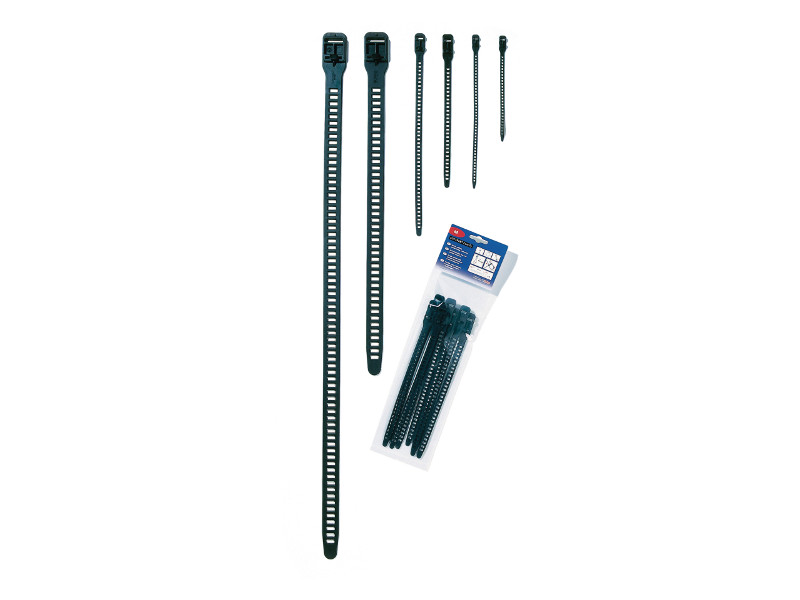 Aufgrund des elastischen und reißfesten Materials eignen sich diese HellermannTyton Kabelbinder (115-07270) in schwarz besonders für die Bündelung und Fixierung von vibrierenden, beweglichen oder pulsierenden Leitungen und Schläuchen, wie zum Beispiel in den Bereichen Windenergie, Bau- und Agrarmaschinen sowie Robotersystemen. Als Wiederöffnungsbinder finden sich zahlreiche Anwendungen für temporäre Befestigung im Bühnen- und Messebau oder auf Musikveranstaltungen. Im Montagewagen sorgt dieser Kabelbinder für Ordnung.