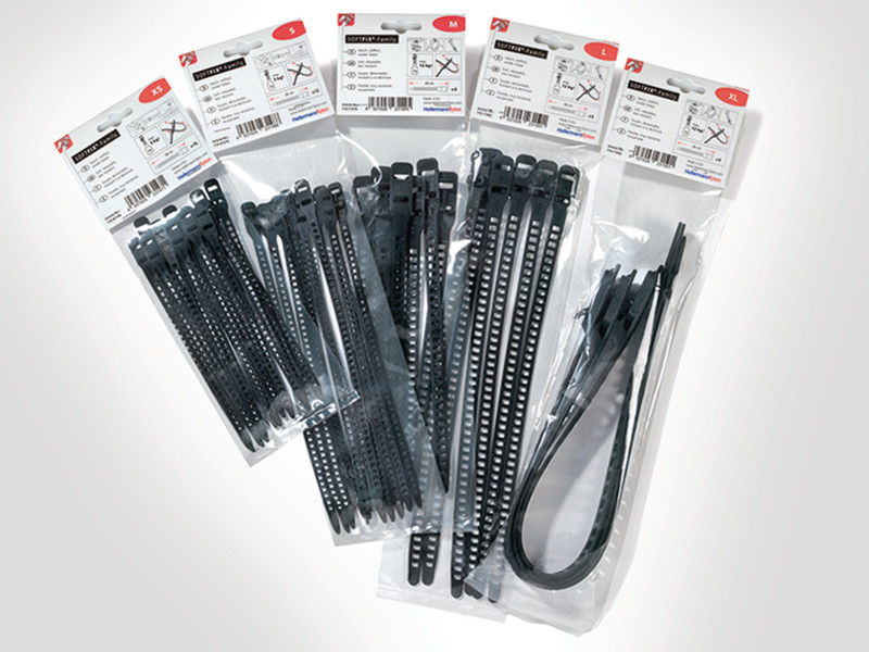 Der lösbare HellermannTyton Kabelbinder SOFTFIX S (115-07270) in Schwarz eignet sich aufgrund des elastischen und reißfesten Materials besonders für die Bündelung und Fixierung von vibrierenden, beweglichen oder pulsierenden Leitungen.