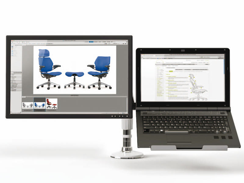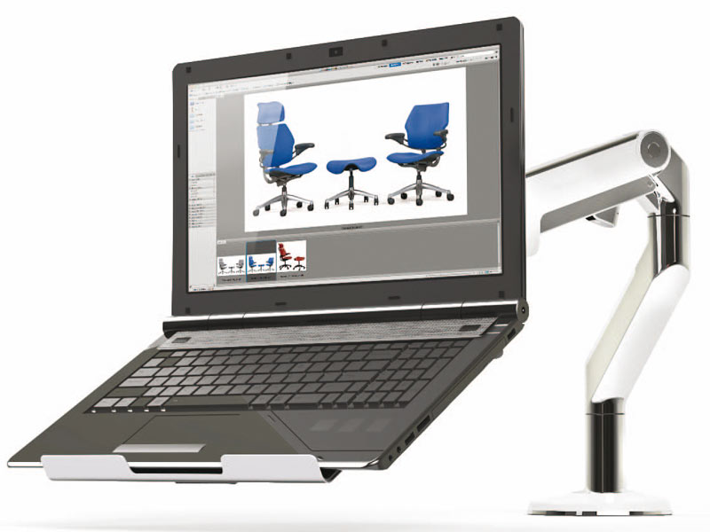 Die Verwendung von Laptops am Arbeitsplatz breitet sich immer weiter aus.Bedauerlicherweise wirken sie kontraproduktiv für ein ergonomisches Arbeitsumfeld und führen oft zu dem sogenannten „Laptopbuckel “. Der führende ergonomische Hersteller Humanscale hat daher ein innovatives Produkt entwickelt, mit dem man in einer gesunden Haltung an seinem Laptop arbeiten kann, während man zusätzlich Tischfläche frei macht.