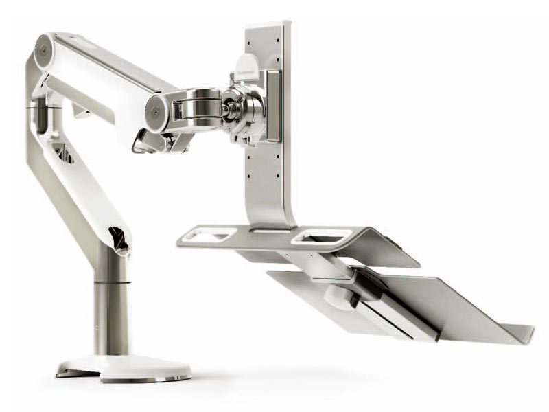 Die Verwendung von Laptops am Arbeitsplatz breitet sich immer weiter aus.Bedauerlicherweise wirken sie kontraproduktiv für ein ergonomisches Arbeitsumfeld und führen oft zu dem sogenannten „Laptopbuckel “. Der führende ergonomische Hersteller Humanscale hat daher ein innovatives Produkt entwickelt, mit dem man in einer gesunden Haltung an seinem Laptop arbeiten kann, während man zusätzlich Tischfläche frei macht.