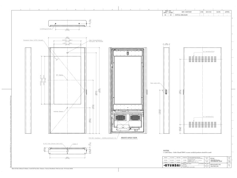 Dank der höchsten Industriestandards erfüllt Hyundai Digital Signage Display die Anforderungen für verschiedene Digital Signage-Lösungen. Sie profitieren nicht nur von der All-Wetter-Funktion, dem intelligenten Kühl- und Heizsystem, sondern auch von der Auto-Helligkeit, die Ihre Botschaft selbst bei direkter Sonneneinstrahlung perfekt lesbar macht. Die Hyundai H557SSV Stele enthält einen 55 Zoll Monitor im Hochformat.