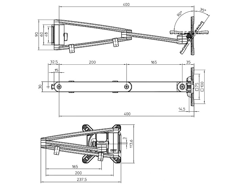 - 2-teiliger Gelenkarm mit Standard-Monitorbefestigung VESA 75x75mm und 100x100mm mm