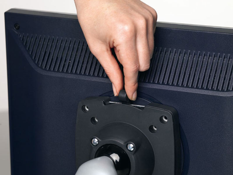 Für die mühelose Befestigung des Monitors mit einem Gewicht bis zu 8 kg sorgt das Novus Quick-Release mit Einhebelbedienung. Sie entspricht dem weit verbreiteten VESA Befestigungsstandard 75 x 75 und 100 x 100 zur Aufnahme aller herkömmlichen Monitore.
