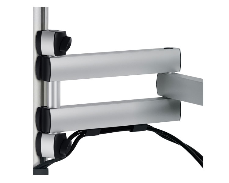 Die zu den Säulen des Tetra-Support-Systems passenden TSS-Tragelemente sorgen für eine schnelle und sichere Befestigung des Monitors. Dank ihres mehrteiligen Gelenkarms sind einige der hochwertigen Faltarme horizontal so weit schwenkbar, dass aus jedem Blickwinkel um die gesamte Säule herum eine optimale Betrachtung möglich ist.