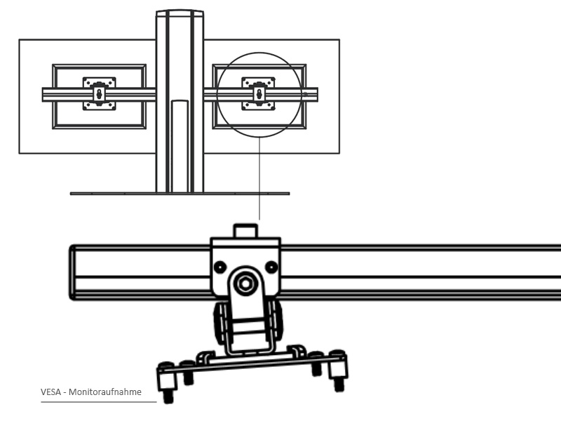 - Maximale Monitorbreite für 24 Zoll: 531 mm (gilt für alle SMS Multi Control Kombinationsmöglichkeiten)