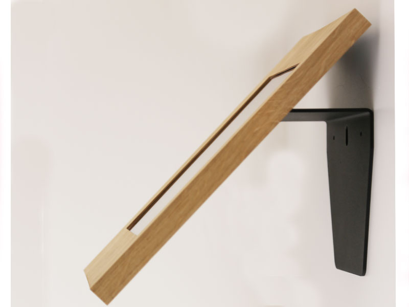 Der TabLines TWH002B Tablet Wandhalter wird mit Schrauben am Tablet-Gehäuse sowie an einer Wand befestigt. Der Neigungswinkel (44°) ist fest und ergonomisch optimiert.