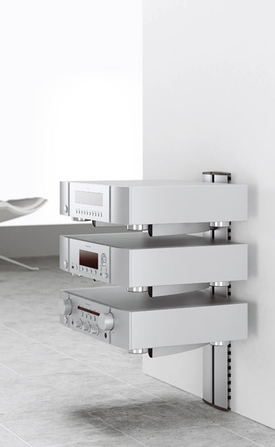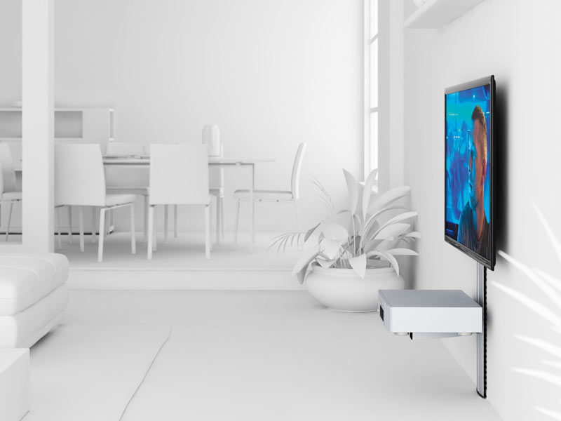 Passende Accessoires verleihen Ihrem Multimedia-Center den letzten Schliff. Der Audio/DVD-Halter AV 10 kann in einer beliebigen Höhe an der Säule positioniert und zur Anpassung an A/V-Geräte fast jeder Größe eingestellt werden. Formschön können Sie an einem Kabelkanal zusätzliche Geräte wie DVD-Player, Blue-ray-Recorder, Receiver o.ä. befestigen.