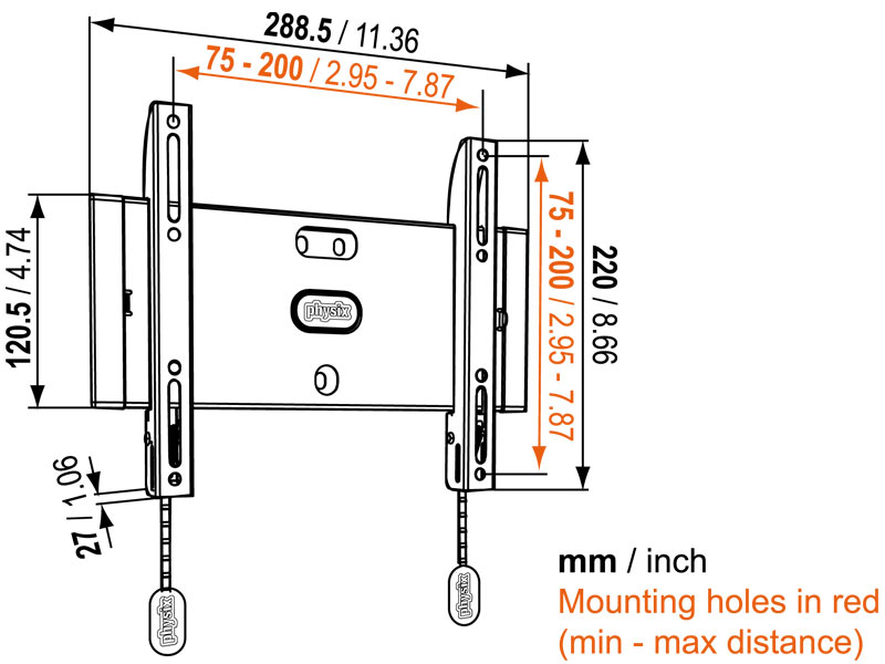 - VESA Halterung Standard 100x100, 200x100, 200x200mm