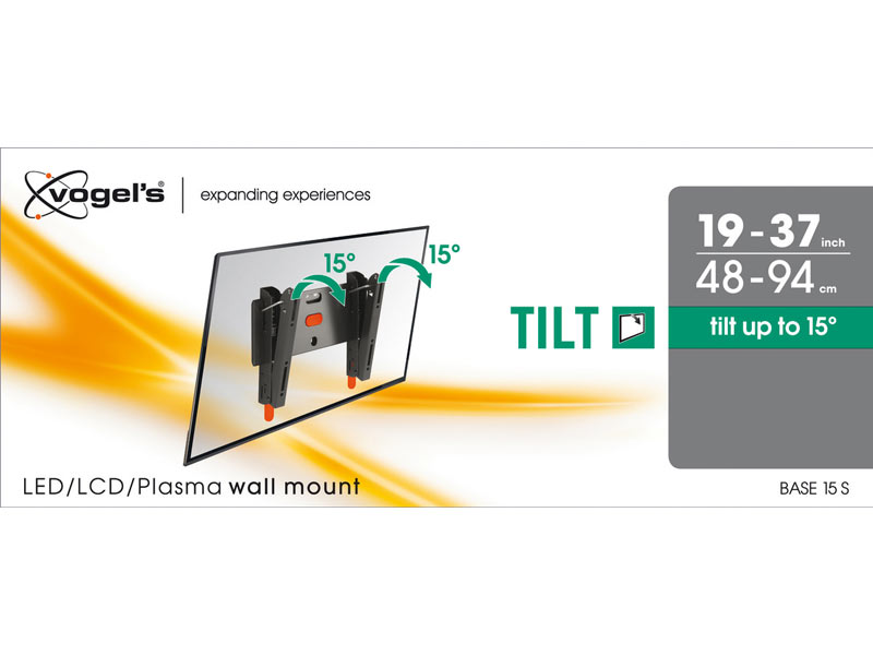 Der Fernseh Wandhalter Base 15 S ist für Fernseher von 19 bis 37 Zoll (48 bis 94 cm), und mit einem Gewicht bis 18 kg ausgelegt. Diese robuste Vogels Halterung ermöglicht eine großartige Sicht auf einen Flachbildschirm, der oberhalb der Betrachtungshöhe positioniert ist. Eine praktische Möglichkeit, ein Fernsehgerät in Ihrem Schlafzimmer,Wohnzimmer, Kinderzimmer und in der Küche zu befestigen. Für ein bequemes Fernseherlebnis neigt dieser Wandhalter Ihren Bildschirm ganz einfach um 15 Grad nach vorne, ohne dass die Kabel stören.Der TV Halter hat einen Wandabstand von 5,2 cm.