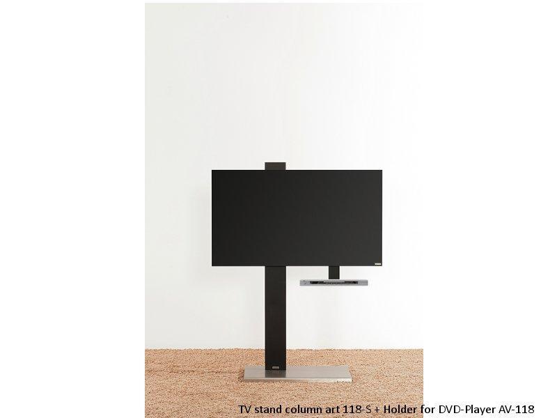 Die Wissmann Halterung für DVD Player für TV Halterung column art 118, AV-118 mit einer Ablageplatte aus Edelstahl ergänzt stilvoll die TV Standfüße der Serie column art 118.