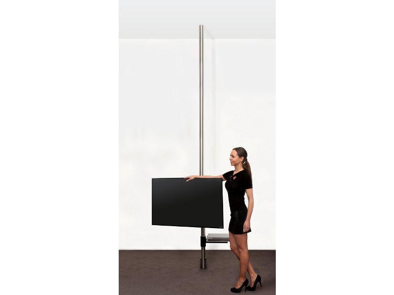 Die Wissmann TV Boden-Deckenhalterung post art 129-1 für Decken bis 330 cm Höhe besteht aus einer Edelstahl-Säule (auf Anfrage auch andere RAL-Farbtöne) zur Befestigung Ihres Flatscreens, den Sie um die Säule drehen können. Sämtliche Kabel werden unsichtbar geführt. Bitte geben Sie Ihre Deckenhöhe bei Bestellung an.