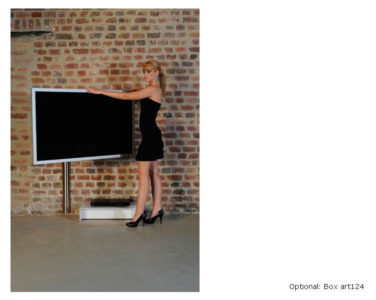 Entsprechend der gesamten Wissmann »solution«-Reihe, lässt sich auch beim Modell »art123« der Fernseher in jeden gewünschten Winkel schwenken und ermöglicht aus jeder Position des Raumes den besten Blick. Die Kabel verlaufen unsichtbar in der senkrechten Säule (keine Kippbewegung). Inklusive TV-Halterung für TV ab Breite 80cm.