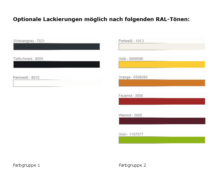Weitere RAL-Farbtöne sind möglich. Bitte fragen Sie bei uns an!