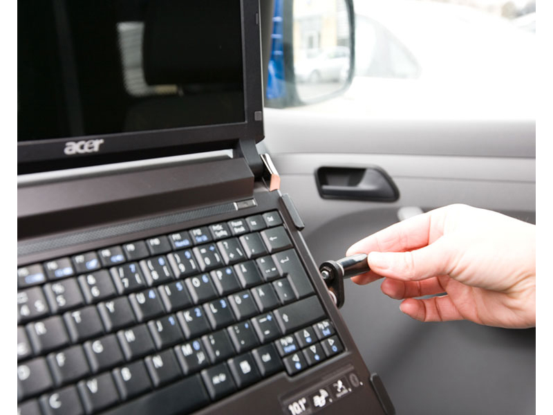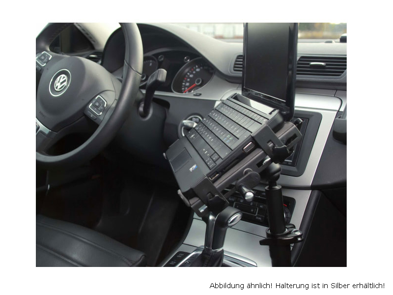 - Der Computer wird sicher und stabil auf der Halterung fixiert